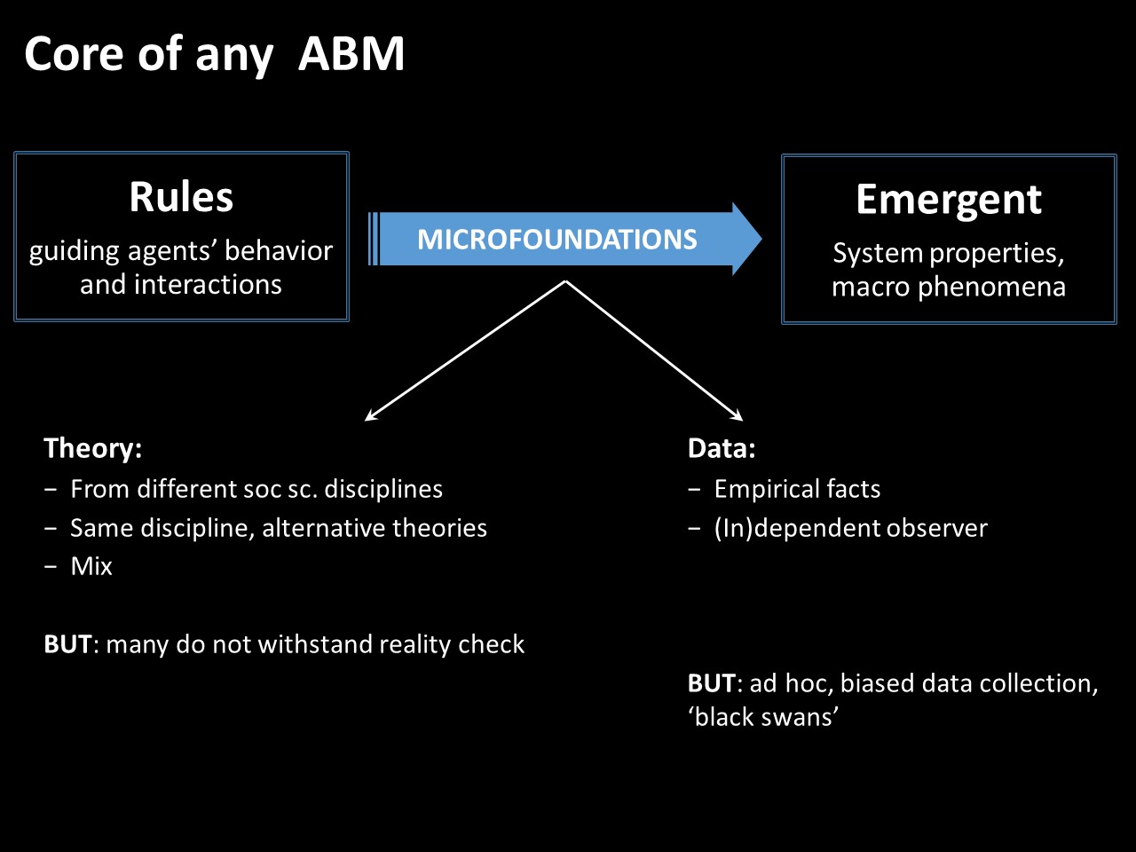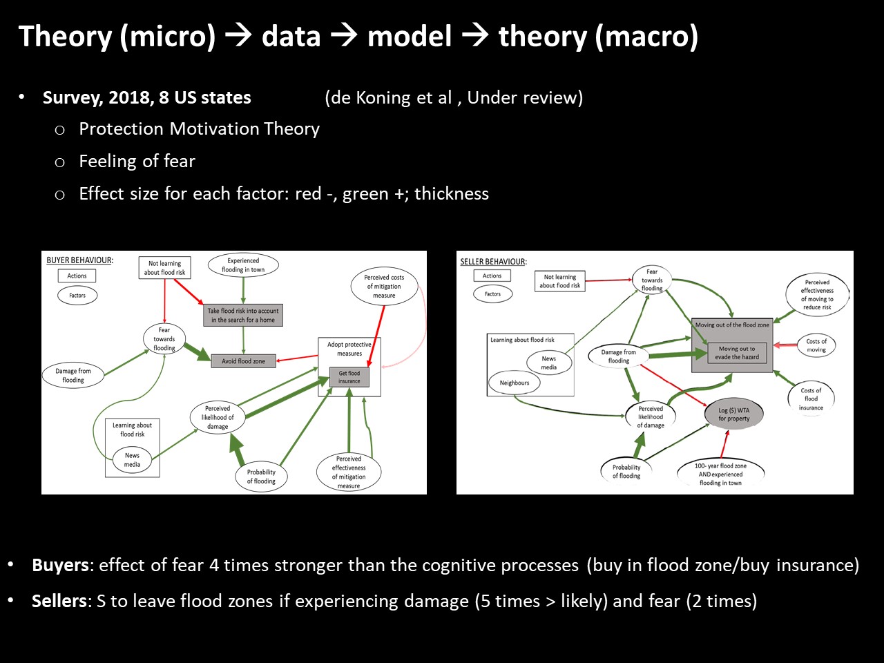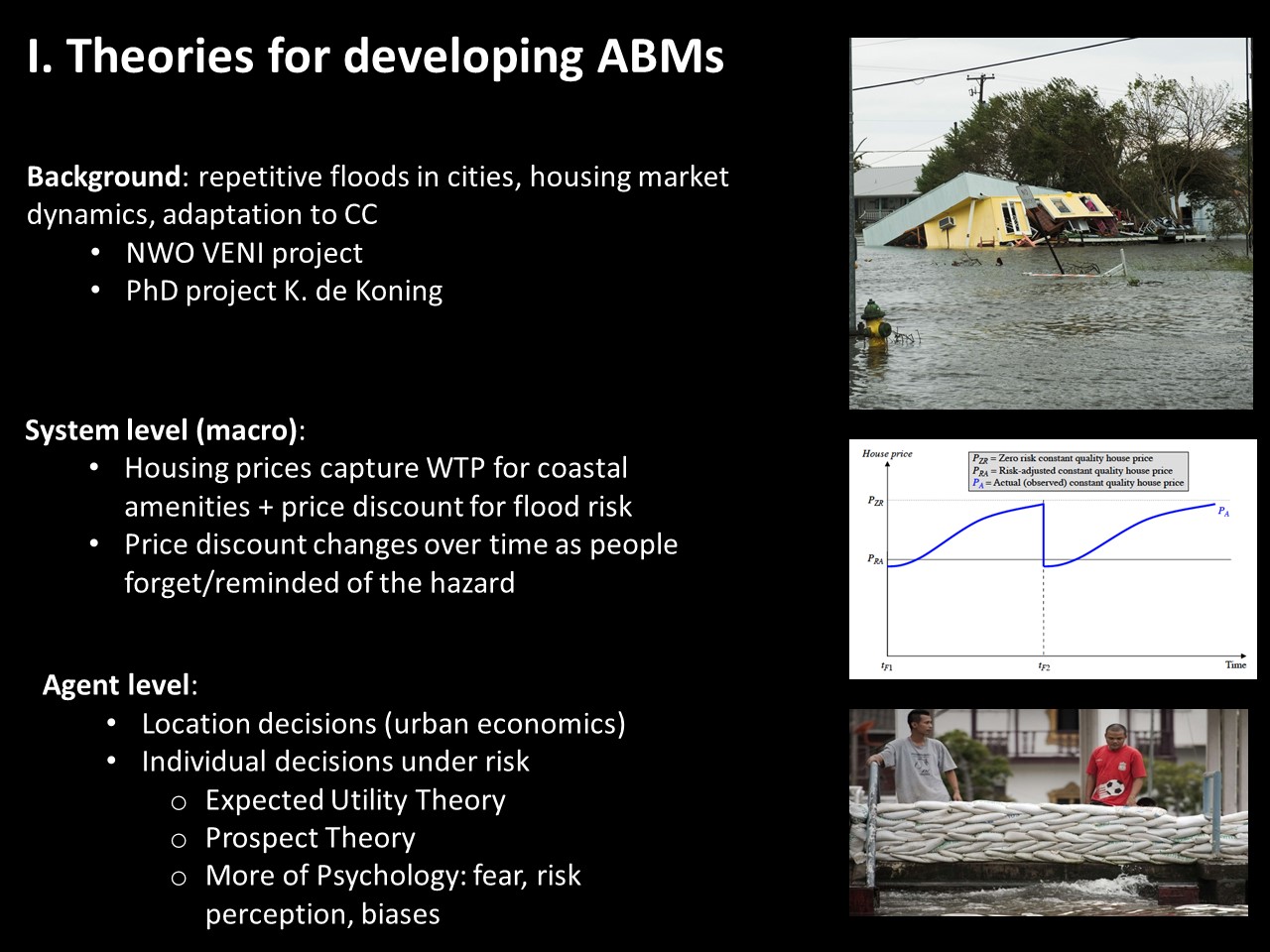 So what is the formal procedure we use to develop our Agent Based Models? We first start from the theory to isolate the cause-effect relationships and to formulate hypotheses. We then collect a set of very different data, ranging from market transactions to GIS, Lab experiments and surveys to test alternative behavioral theories and compare to observed macro data.